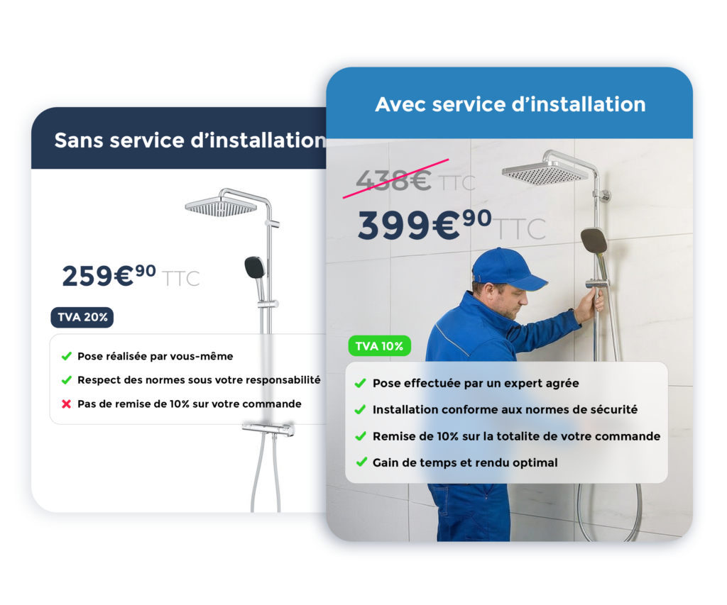 Le tarif de la prestation est indiqué directement sur la fiche produit, lors de l’ajout du service d’installation au panier. Il varie selon le type d’équipement et la complexité de l’intervention.