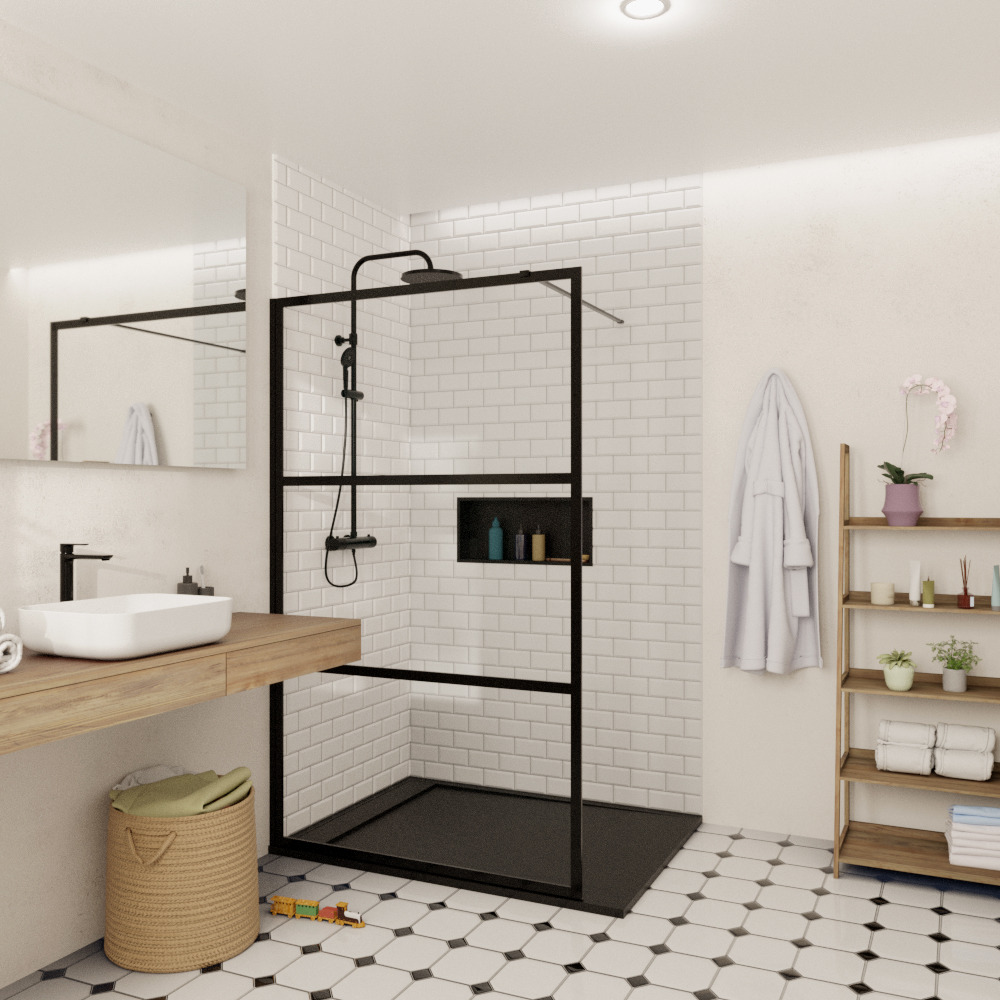 | Paroi | Verre trempé 6 à 8 mm, fixe ou avec porte, différents types de verre | Verre transparent pour agrandir visuellement, fumé ou texturé pour l’intimité |